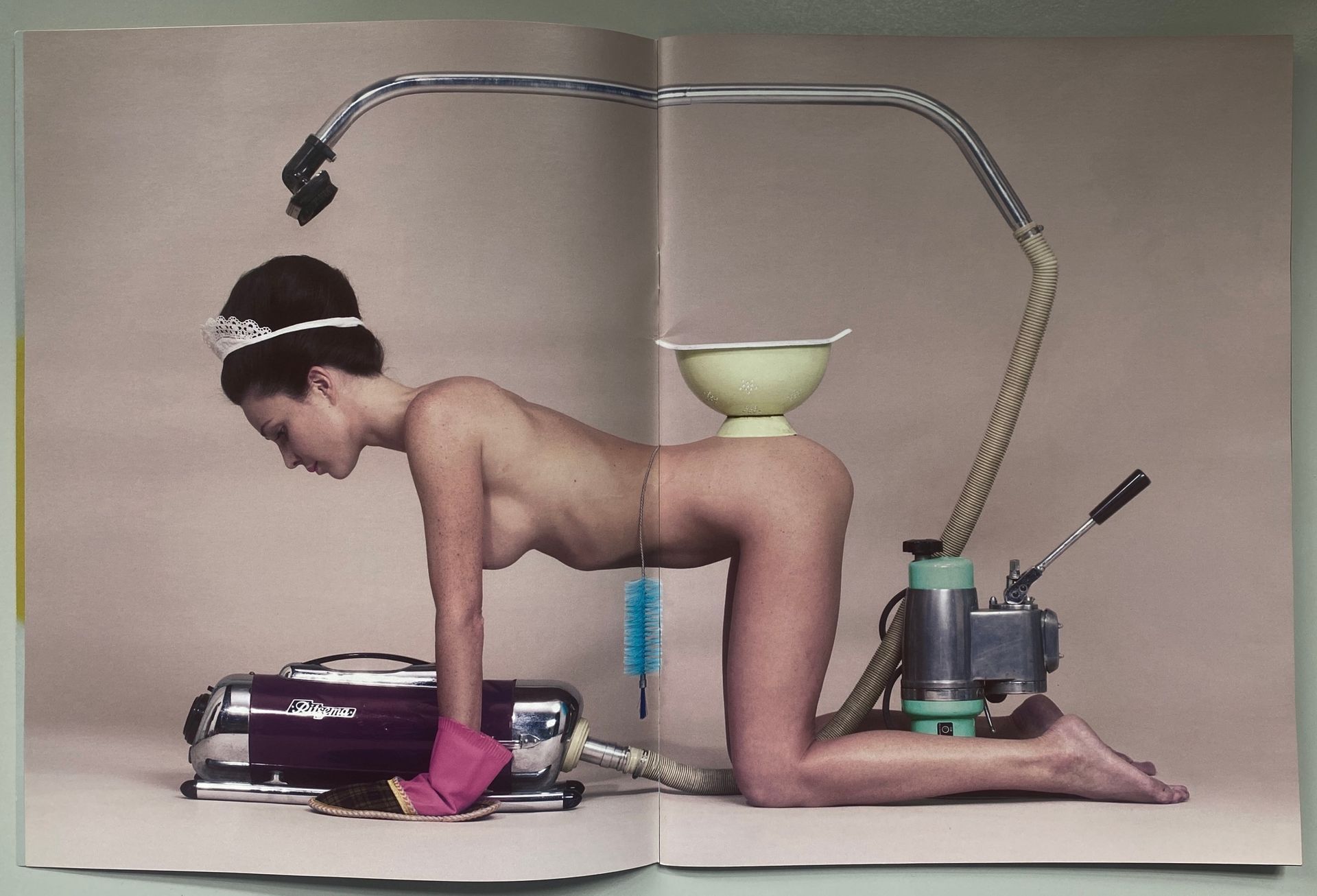 Pierpaolo Ferrari shot every photo in Toiletpaper - presumably in a fairly direct collaboration with Maurizio Cattelan. The double pages don't relate to each other, save for being in the same magazine. They just appear to deconstruct and reconstruct themselves as images that look curiously familiar.